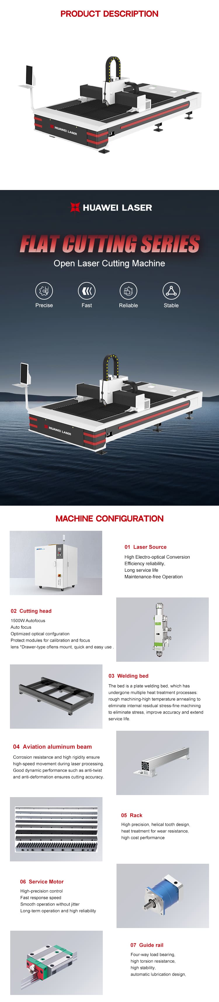 ТхеХУАВЕИ ЛАСЕР 6000В 12000В Високо прецизна машина за ласерско сечење отвореног типаје високих перформансимашина за ласерско сечење лима, дизајниран да пружи брзе, прецизне и поуздане резултате. Опремљен снажним ласерским извором од 6000В или 12000В,ХУАВЕИ ЛАСЕР 6000В 12000В Високо прецизна машина за ласерско сечење отвореног типаобезбеђује глатке, прецизне резове на материјалима као што су нерђајући челик, угљенични челик и алуминијум. Његов дизајн отвореног типа омогућава лак приступ за утовар и истовар материјала, повећавајући ефикасност у великим производним окружењима. Направљена за тешке примене, машина нуди изузетну тачност сечења, минимално термичко изобличење и поуздане перформансе, што је чини идеалним избором за производњу лимова и задатке производње високе прецизности.