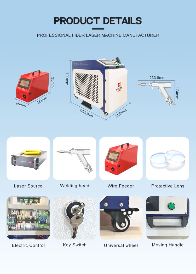 ТхеХУАВЕИ ЛАСЕРИндустријска машина за ласерско заваривање 1500В 2000В 3000В за производњу челичних конструкцијаје високих перформансиРучна машина за ласерско заваривањедизајниран за захтевне примене челичних конструкција. Са стабилним ласерским излазом и прецизном контролом, он пружа снажну пенетрацију, чисте заварене шавове и поуздану чврстоћу спојева за компоненте од челичних конструкција. Изграђен за индустријску употребу,ХУАВЕИ ЛАСЕРИндустријска машина за ласерско заваривање обезбеђује конзистентне перформансе, ефикасан рад и поуздан квалитет заваривања за пројекте израде, инсталације и одржавања челичних конструкција.